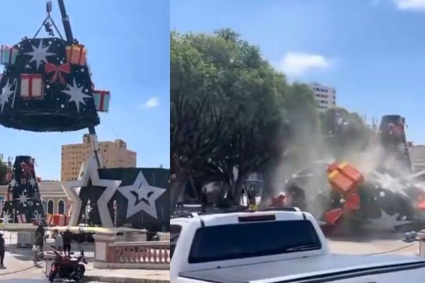 Colapsa grúa durante instalación de árbol navideño en Brasil; hay una persona fallecida