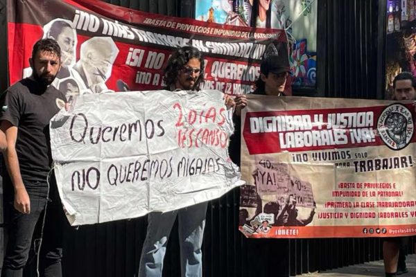 Integrantes del Frente Nacional Por las 40 Horas realizaron un mitin frente al Senado de la República para manifestar su rechazo al dictamen de la…