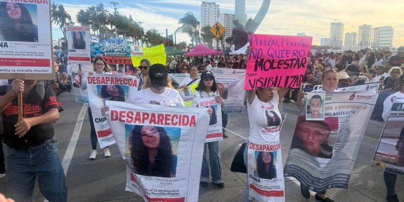 Familiares de personas desaparecidas participaron en el desfile del carnaval en Mazatlán con pancartas y fotografías de sus seres queridos, con el objetivo de visibilizar sus casos ante miles de asistentes.