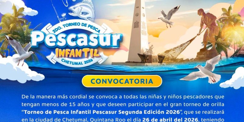 El próximo 26 de abril de 2026 se llevará a cabo la segunda edición del torneo Pesca Sur Infantil en el muelle fiscal de Chetumal, como parte de las actividades conmemorativas por el Día del Niño. El evento contará con la participación de 80 niñas y niños de entre 4 y 14 años de edad.